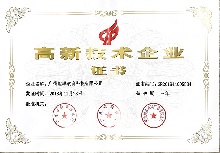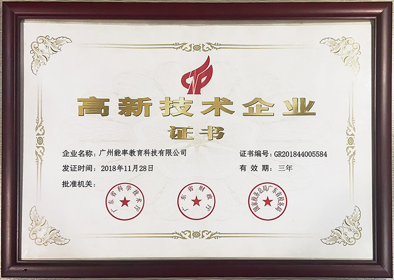 11月22日, 必克英语再次获中华人民共和国科学技术厅权威认证为:广东省高新技术企业