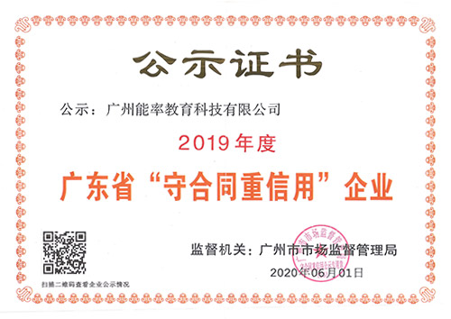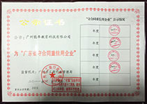 必克英语被广州市工商行政管理局评为“守合同重信用”企业。