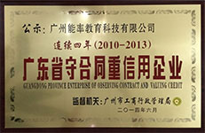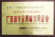 2014年3月15日 广州能率教育科技有限公司(必克英语)连续4年被广州市工商行政管理局评为“守合同重信用”企业。