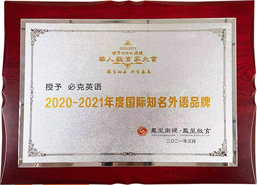 3月,必克英语获评“2020-2021年度国际知识外语品牌”