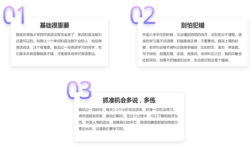 越快踏进社会他越发觉英语的重要性,英语能力的高低限制着未来的提升和发展空间。